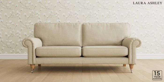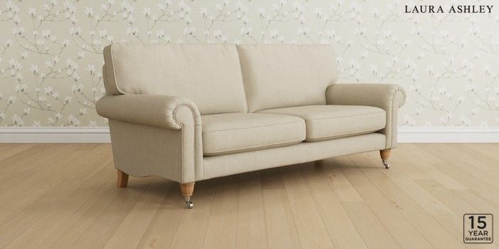 6.12.13 Buy Kingston by Laura Ashley 3 Seater Sofa Wooton Natural Low Chrome Castor - Light Oak from the Laura Ashley online shop Click here to use our website with more accessibility support, for example screen readers