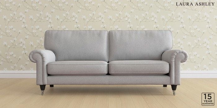 6.12.1 Buy Kingston by Laura Ashley 3 Seater Sofa Wooton Pale Steel Grey Low Chrome Castor - Black from the Laura Ashley online shop Click here to use our website with more accessibility support, for example screen readers
