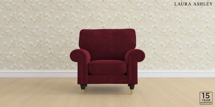 6.12.13 Buy Kingston by Laura Ashley Armchair Alwyn Velvet Burgundy Red Low Brass Castor - Black from the Laura Ashley online shop Click here to use our website with more accessibility support, for example screen readers