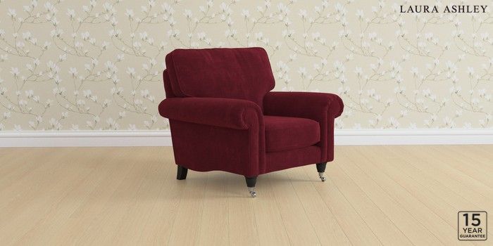6.12.1 Buy Kingston by Laura Ashley Armchair Alwyn Velvet Burgundy Red Low Chrome Castor - Black from the Laura Ashley online shop Click here to use our website with more accessibility support, for example screen readers