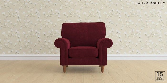 6.12.1 Buy Kingston by Laura Ashley Armchair Alwyn Velvet Burgundy Red Low Turned - Teak from the Laura Ashley online shop Click here to use our website with more accessibility support, for example screen readers
