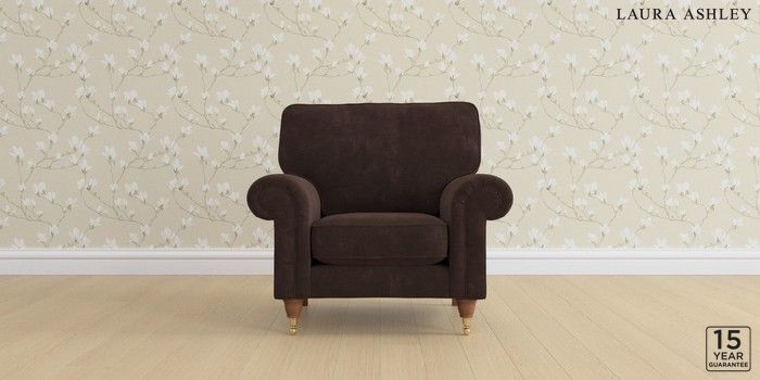 6.12.1 Buy Kingston by Laura Ashley Armchair Alwyn Velvet Chocolate Brown Low Brass Castor - Teak from the Laura Ashley online shop Click here to use our website with more accessibility support, for example screen readers