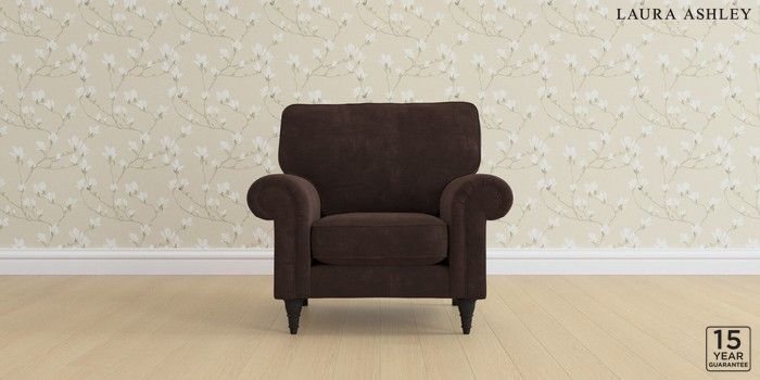6.12.1 Buy Kingston by Laura Ashley Armchair Alwyn Velvet Chocolate Brown Low Turned - Black from the Laura Ashley online shop Click here to use our website with more accessibility support, for example screen readers