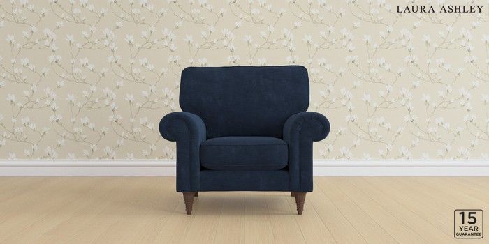 6.12.1 Buy Kingston by Laura Ashley Armchair Alwyn Velvet Midnight Navy Low Turned - Chestnut from the Laura Ashley online shop Click here to use our website with more accessibility support, for example screen readers