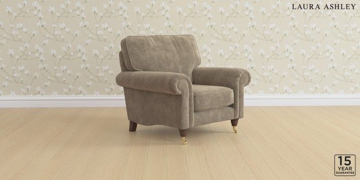 6.12.1 Buy Kingston by Laura Ashley Armchair Alwyn Velvet Truffle Natural Low Brass Castor - Chestnut from the Laura Ashley online shop Click here to use our website with more accessibility support, for example screen readers