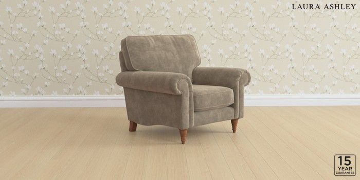 6.12.1 Buy Kingston by Laura Ashley Armchair Alwyn Velvet Truffle Natural Low Turned - Teak from the Laura Ashley online shop Click here to use our website with more accessibility support, for example screen readers