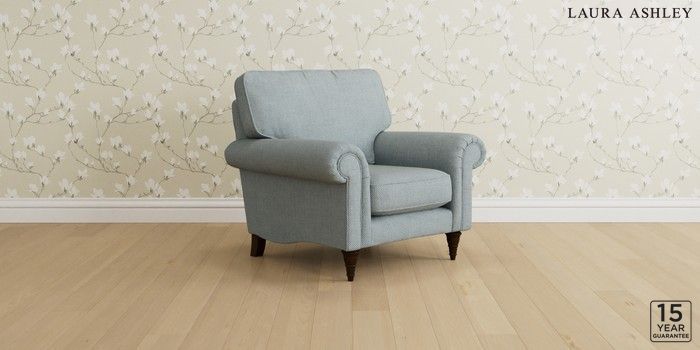6.12.13 Buy Kingston by Laura Ashley Armchair Anneliese Seaspray Blue Low Turned - Chestnut from the Laura Ashley online shop Click here to use our website with more accessibility support, for example screen readers