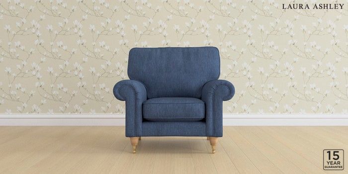 6.12.1 Buy Kingston by Laura Ashley Armchair Bainton Midnight Navy Low Brass Castor - Light Oak from the Laura Ashley online shop Click here to use our website with more accessibility support, for example screen readers