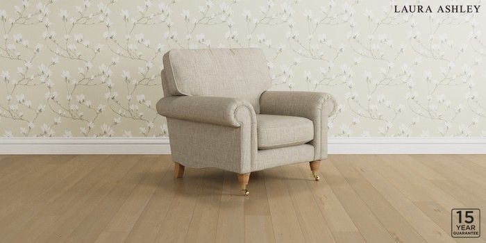 6.12.1 Buy Kingston by Laura Ashley Armchair Bainton Natural Low Brass Castor - Light Oak from the Laura Ashley online shop Click here to use our website with more accessibility support, for example screen readers