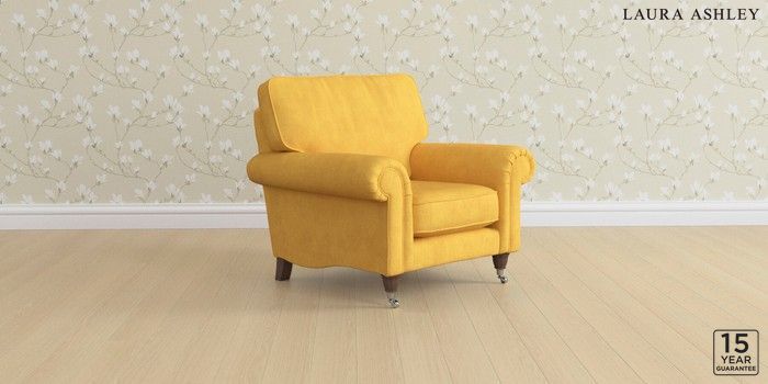6.12.1 Buy Kingston by Laura Ashley Armchair Bainton Ochre Yellow Low Chrome Castor - Chestnut from the Laura Ashley online shop Click here to use our website with more accessibility support, for example screen readers