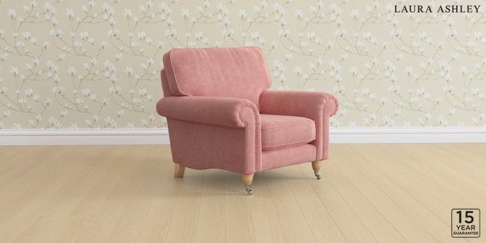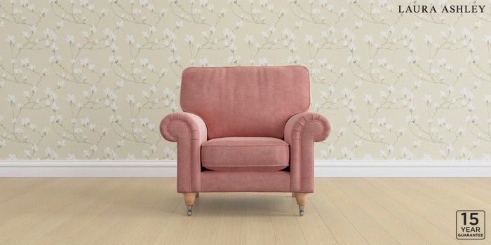 6.12.13 Buy Kingston by Laura Ashley Armchair Bainton Old Rose Pink Low Chrome Castor - Light Oak from the Laura Ashley online shop Click here to use our website with more accessibility support, for example screen readers