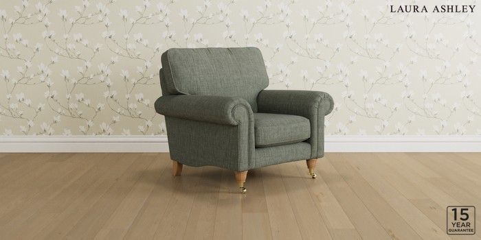 6.12.13 Buy Kingston by Laura Ashley Armchair Bainton Sage Green Low Brass Castor - Light Oak from the Laura Ashley online shop Click here to use our website with more accessibility support, for example screen readers