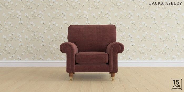 6.12.13 Buy Kingston by Laura Ashley Armchair Edwin Chenille Burgundy Red Low Brass Castor - Teak from the Laura Ashley online shop Click here to use our website with more accessibility support, for example screen readers