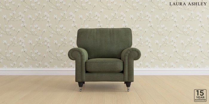 6.12.13 Buy Kingston by Laura Ashley Armchair Edwin Chenille Hedgerow Green Low Chrome Castor - Black from the Laura Ashley online shop Click here to use our website with more accessibility support, for example screen readers