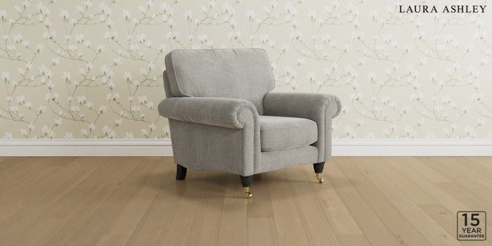 6.12.1 Buy Kingston by Laura Ashley Armchair Edwin Chenille Silver Grey Low Brass Castor - Black from the Laura Ashley online shop Click here to use our website with more accessibility support, for example screen readers