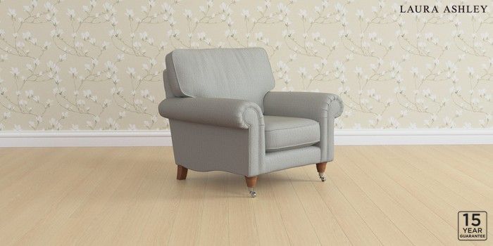 6.12.13 Buy Kingston by Laura Ashley Armchair Edwin Herringbone Pale Steel Grey Low Chrome Castor - Teak from the Laura Ashley online shop Click here to use our website with more accessibility support, for example screen readers