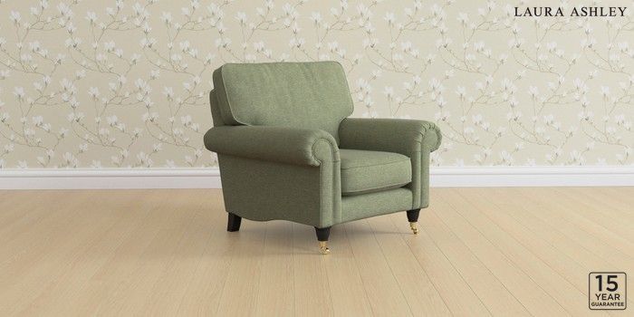 6.12.13 Buy Kingston by Laura Ashley Armchair Harley Moss Green Low Brass Castor - Black from the Laura Ashley online shop Click here to use our website with more accessibility support, for example screen readers