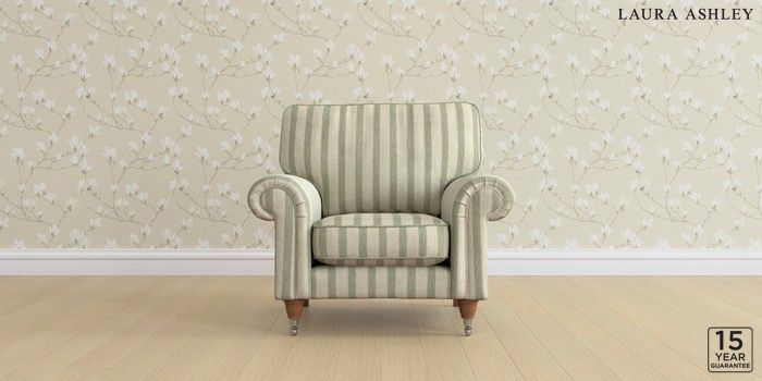 6.12.1 Buy Kingston by Laura Ashley Armchair Kinsham Stripe Hedgerow Green Low Chrome Castor - Teak from the Laura Ashley online shop Click here to use our website with more accessibility support, for example screen readers