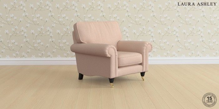 6.12.1 Buy Kingston by Laura Ashley Armchair Melbreak Geo Chalk Pink Low Brass Castor - Black from the Laura Ashley online shop Click here to use our website with more accessibility support, for example screen readers