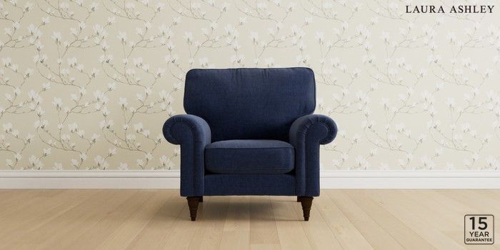 6.12.1 Buy Kingston by Laura Ashley Armchair Nantmor Midnight Navy Low Turned - Chestnut from the Laura Ashley online shop Click here to use our website with more accessibility support, for example screen readers