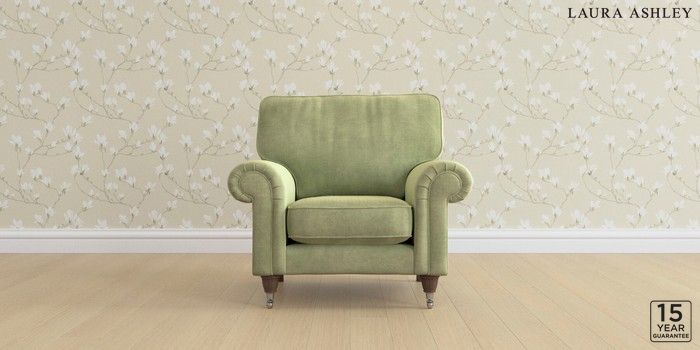6.12.1 Buy Kingston by Laura Ashley Armchair Orla Pale Hedgerow Green Low Chrome Castor - Chestnut from the Laura Ashley online shop Click here to use our website with more accessibility support, for example screen readers