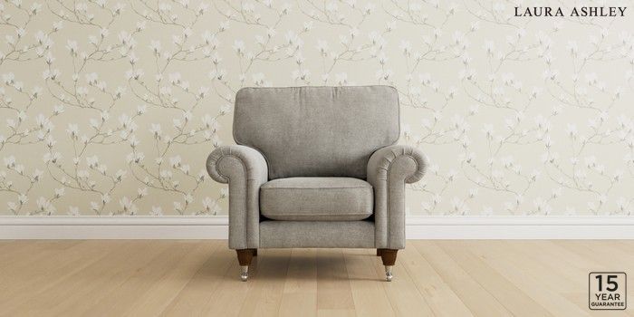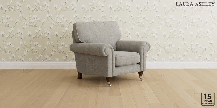 6.12.1 Buy Kingston by Laura Ashley Armchair Orla Pale Steel Grey Low Chrome Castor - Teak from the Laura Ashley online shop Click here to use our website with more accessibility support, for example screen readers