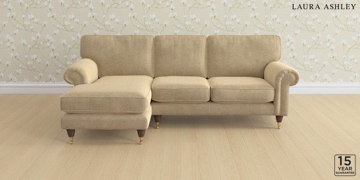 6.12.1 Buy Kingston by Laura Ashley Medium Sofa Chaise - Left Hand Peyton Sable Natural Low Brass Castor - Chestnut from the Laura Ashley online shop Click here to use our website with more accessibility support, for example screen readers