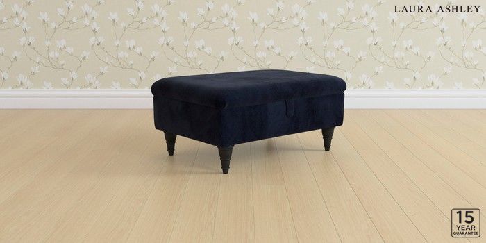 6.12.1 Buy Kingston by Laura Ashley Storage Footstool Orla Midnight Navy Low Turned - Black from the Laura Ashley online shop Click here to use our website with more accessibility support, for example screen readers