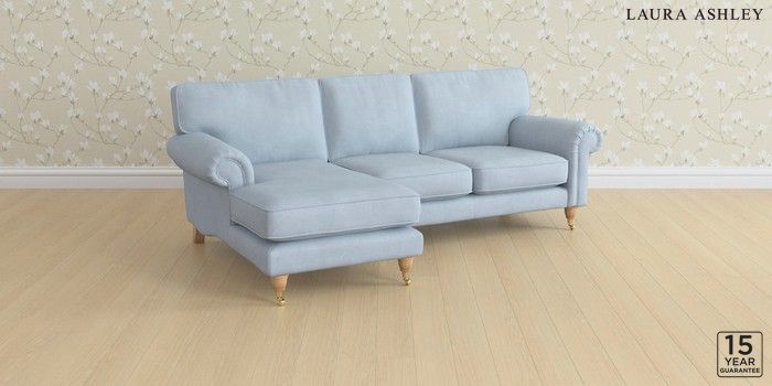 6.12.1 Buy Kingston by Laura Ashley Medium Sofa Chaise - Left Hand Ailsworth Newport Blue Low Brass Castor - Light Oak from the Laura Ashley online shop Click here to use our website with more accessibility support, for example screen readers