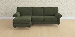 6.12.13 Buy Kingston by Laura Ashley Medium Sofa Chaise - Left Hand Alwyn Velvet Ivy Green Low Brass Castor - Chestnut from the Laura Ashley online shop Click here to use our website with more accessibility support, for example screen readers