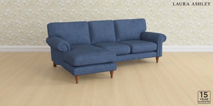 6.12.1 Buy Kingston by Laura Ashley Medium Sofa Chaise - Left Hand Bainton Midnight Navy Low Turned - Teak from the Laura Ashley online shop Click here to use our website with more accessibility support, for example screen readers