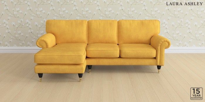 6.12.1 Buy Kingston by Laura Ashley Medium Sofa Chaise - Left Hand Bainton Ochre Yellow Low Brass Castor - Black from the Laura Ashley online shop Click here to use our website with more accessibility support, for example screen readers