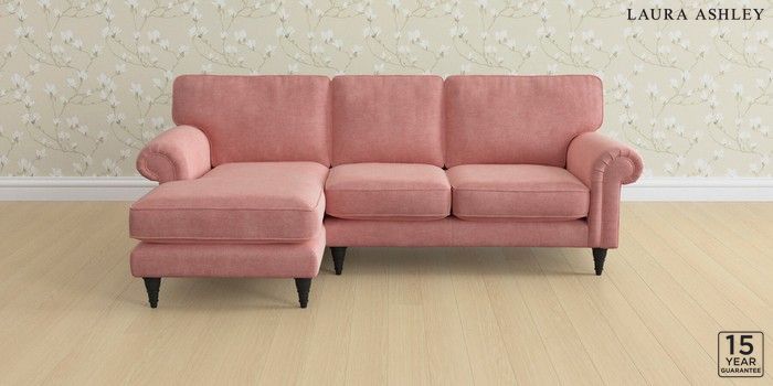 6.12.1 Buy Kingston by Laura Ashley Medium Sofa Chaise - Left Hand Bainton Old Rose Pink Low Turned - Black from the Laura Ashley online shop Click here to use our website with more accessibility support, for example screen readers