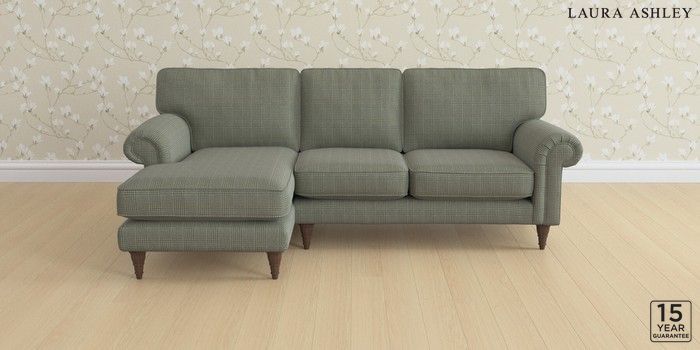 6.12.1 Buy Kingston by Laura Ashley Medium Sofa Chaise - Left Hand Birchgrove Check Olive Green Low Turned - Chestnut from the Laura Ashley online shop Click here to use our website with more accessibility support, for example screen readers
