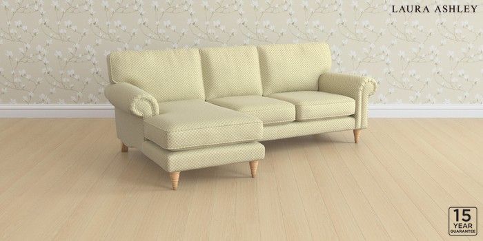 6.12.1 Buy Kingston by Laura Ashley Medium Sofa Chaise - Left Hand Chequers Hedgerow Green Low Turned - Light Oak from the Laura Ashley online shop Click here to use our website with more accessibility support, for example screen readers