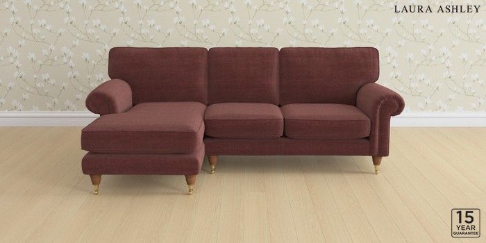 6.12.1 Buy Kingston by Laura Ashley Medium Sofa Chaise - Left Hand Edwin Chenille Burgundy Red Low Brass Castor - Teak from the Laura Ashley online shop Click here to use our website with more accessibility support, for example screen readers