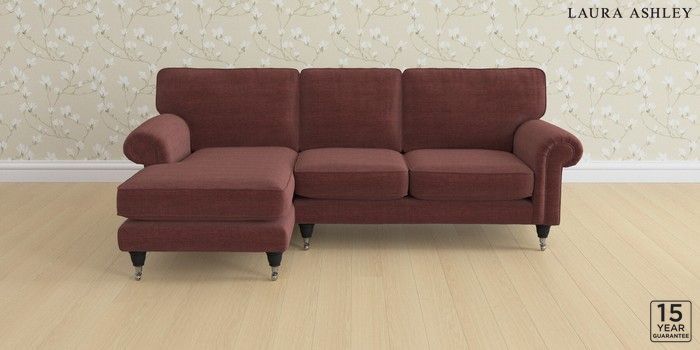 6.12.1 Buy Kingston by Laura Ashley Medium Sofa Chaise - Left Hand Edwin Chenille Burgundy Red Low Chrome Castor - Black from the Laura Ashley online shop Click here to use our website with more accessibility support, for example screen readers