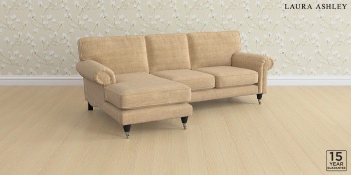 6.12.1 Buy Kingston by Laura Ashley Medium Sofa Chaise - Left Hand Edwin Chenille Gold Natural Low Chrome Castor - Black from the Laura Ashley online shop Click here to use our website with more accessibility support, for example screen readers