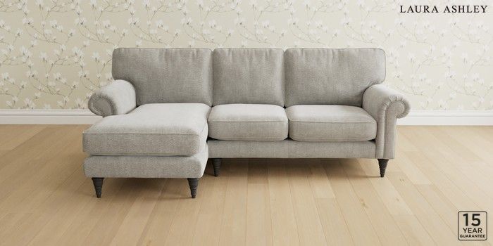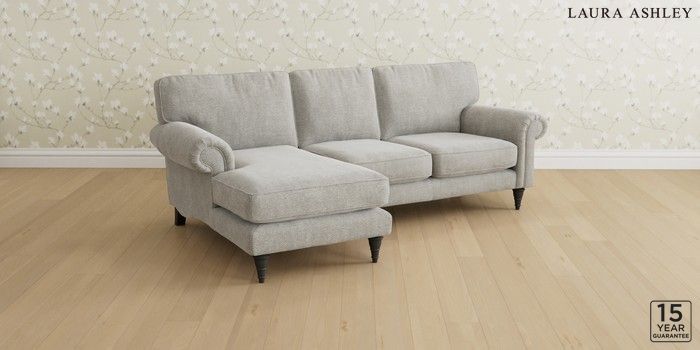 6.12.1 Buy Kingston by Laura Ashley Medium Sofa Chaise - Left Hand Edwin Chenille Silver Grey Low Turned - Black from the Laura Ashley online shop Click here to use our website with more accessibility support, for example screen readers