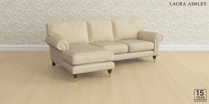 6.12.1 Buy Kingston by Laura Ashley Medium Sofa Chaise - Left Hand Edwin Herringbone Natural Low Brass Castor - Chestnut from the Laura Ashley online shop Click here to use our website with more accessibility support, for example screen readers