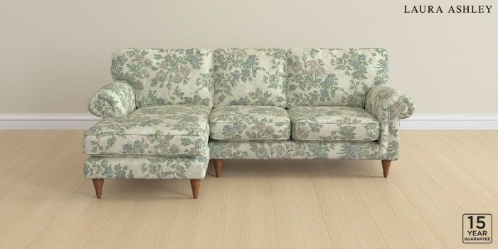 6.12.1 Buy Kingston by Laura Ashley Medium Sofa Chaise - Left Hand Ellerby Seaspray Blue Low Turned - Teak from the Laura Ashley online shop Click here to use our website with more accessibility support, for example screen readers