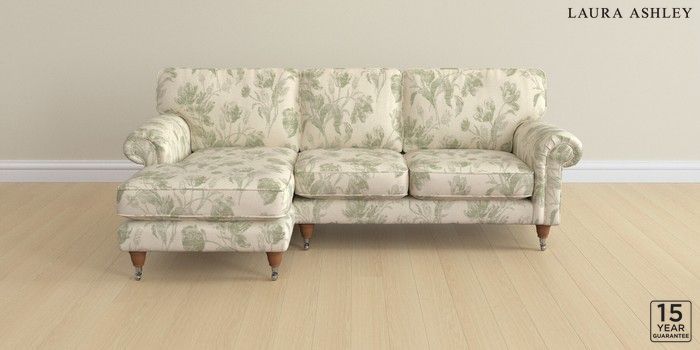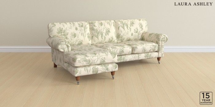 6.12.1 Buy Kingston by Laura Ashley Medium Sofa Chaise - Left Hand Gosford Weave Sage Green Low Chrome Castor - Teak from the Laura Ashley online shop Click here to use our website with more accessibility support, for example screen readers