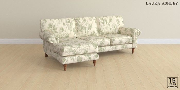 6.12.1 Buy Kingston by Laura Ashley Medium Sofa Chaise - Left Hand Gosford Weave Sage Green Low Turned - Teak from the Laura Ashley online shop Click here to use our website with more accessibility support, for example screen readers