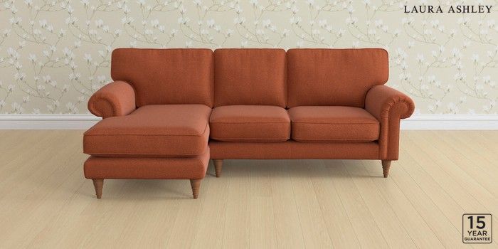 6.12.1 Buy Kingston by Laura Ashley Medium Sofa Chaise - Left Hand Harley Terracotta Orange Low Turned - Teak from the Laura Ashley online shop Click here to use our website with more accessibility support, for example screen readers