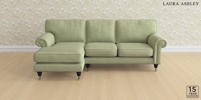 6.12.1 Buy Kingston by Laura Ashley Medium Sofa Chaise - Left Hand Kinsham Hedgerow Green Low Chrome Castor - Black from the Laura Ashley online shop Click here to use our website with more accessibility support, for example screen readers