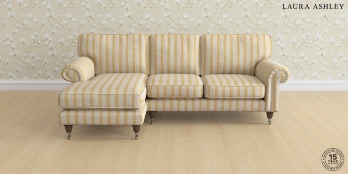 7.0.3 Buy Kingston by Laura Ashley Medium Sofa Chaise - Left Hand Kinsham Stripe Ochre Yellow Low Chrome Castor - Chestnut from the Laura Ashley online shop Click here to use our website with more accessibility support, for example screen readers