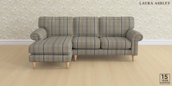 6.12.1 Buy Kingston by Laura Ashley Medium Sofa Chaise - Left Hand Longstowe Check French Grey Low Turned - Light Oak from the Laura Ashley online shop Click here to use our website with more accessibility support, for example screen readers