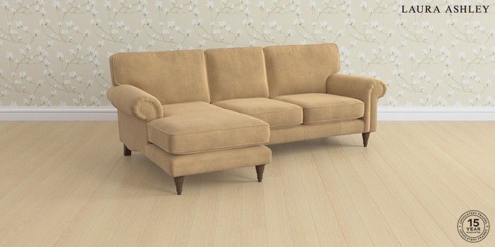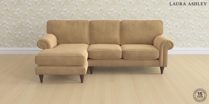 6.12.1 Buy Kingston by Laura Ashley Medium Sofa Chaise - Left Hand Lundar Chenille Caramel Natural Low Turned - Chestnut from the Laura Ashley online shop Click here to use our website with more accessibility support, for example screen readers