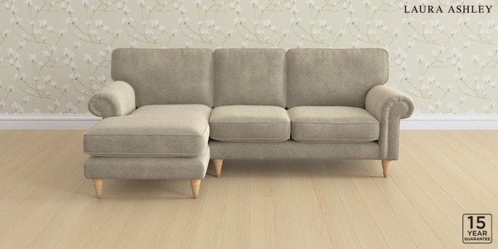 6.12.1 Buy Kingston by Laura Ashley Medium Sofa Chaise - Left Hand Lundar Chenille Truffle Natural Low Turned - Light Oak from the Laura Ashley online shop Click here to use our website with more accessibility support, for example screen readers