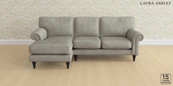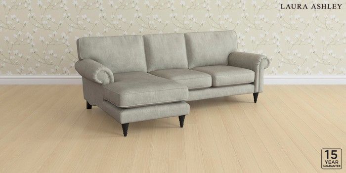 6.12.1 Buy Kingston by Laura Ashley Medium Sofa Chaise - Left Hand Bainton Pale Steel Grey Low Turned - Black from the Laura Ashley online shop Click here to use our website with more accessibility support, for example screen readers